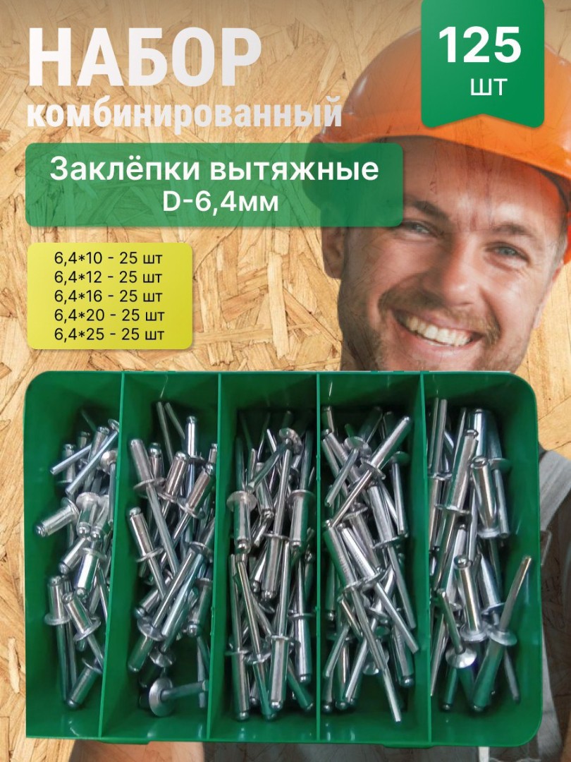 Набор комбинированный " Заклепки вытяжные D-6,4 мм " - 125 шт
