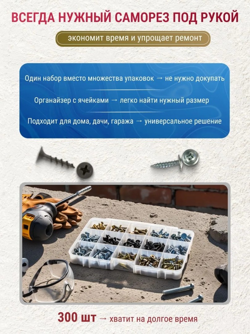 Набор саморезов Универсальный - 300 шт